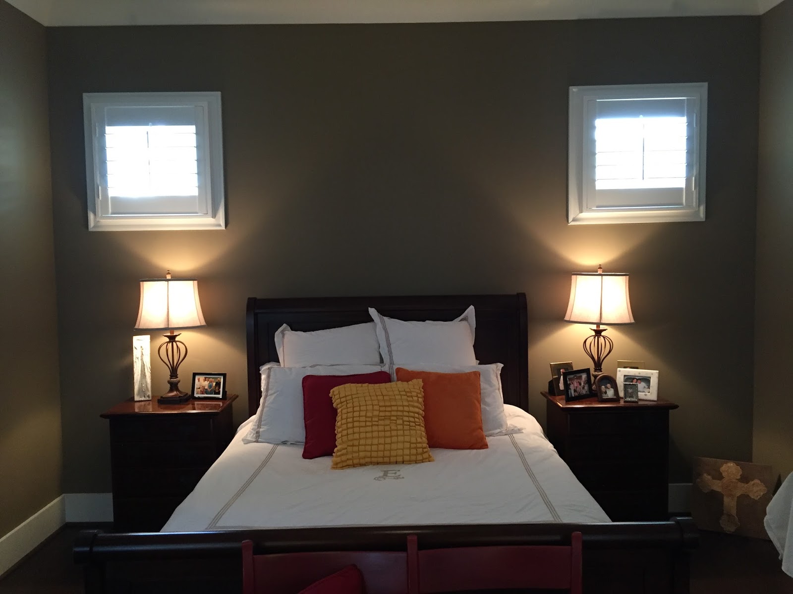 NOT.A.SINGLE.THING!! Mark vacuumed last night so there aren't even any dust bunnies!! We have a few pictures on our bedside tables but we try to keep everything neat and clean.